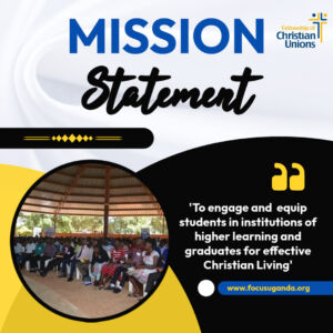 Fellowship of Christian Unions is an evangelical interdenominational Christian organization committed to sharing the good news of Jesus Christ on university and college campuses in Uganda; nurturing students to grow and become effective witnesses of Christ and leaders in the church and society, through Evangelism, Discipleship and Compassionate Empathy.